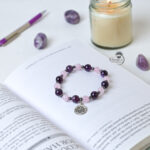 Amethyst: It helps with intuition, insight, safe travel, connecting to higher self. Improves creativity. Helps in manifestation, reducing stress and anxiety, nightmares and addictions.